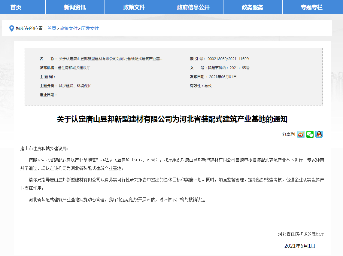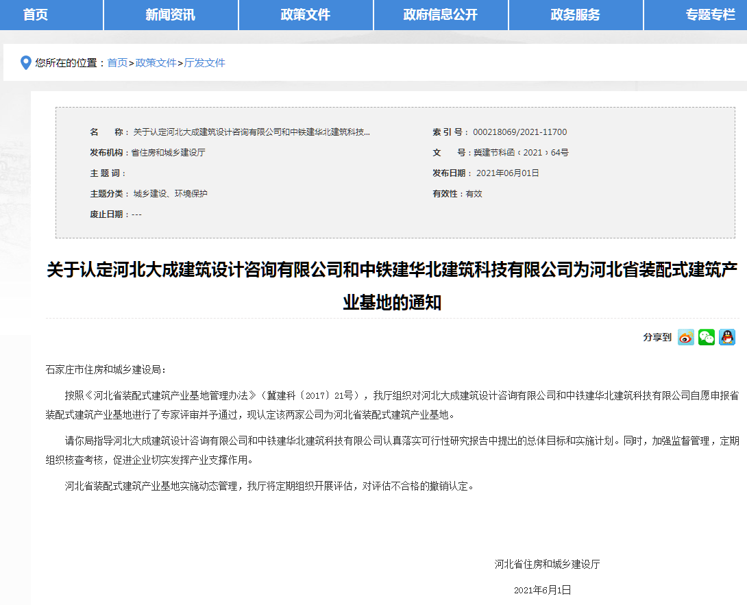 近日,河北省住房和城鄉(xiāng)建設(shè)發(fā)布:《我省新認(rèn)定4處“河北省裝配式建筑產(chǎn)業(yè)基地”》,分別是河北大成建筑設(shè)計(jì)咨詢有限公司、中鐵建華北建筑科技有限公司、唐山昱邦新型建材有限公司、河北中冶智群裝配式建筑科技有限公司。